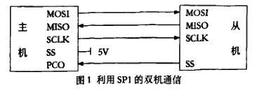 在整個單片機設(shè)計系統(tǒng)中,必須自始至終保證只能有一片單片機作為主機。當(dāng)一片單片機設(shè)置為主機后,其余的單片機只能作為從機。圖1中,主機的Ss接高電平。主機的一個I/O腳PCO用于控制從機的SRPI允許SS腳工作。當(dāng)PCO設(shè)置為低電平時,允許從機的SPI工作。在傳送時,數(shù)據(jù)同時發(fā)送(串行移位輸出)和接收(串行移位輸入)。不論是主機接收、從機發(fā)送,還是主機發(fā)送、從機接收,均由主機啟動次傳送過程,因此,當(dāng)主機檢測到從機發(fā)來的準(zhǔn)備好信號后オ啟動一次傳送。因此,兩片單片機之間必須有相互握手信號。*簡單的實現(xiàn)辦法是兩片單片機的某兩個I/O腳對接,一根線用于主機發(fā)送、從機檢