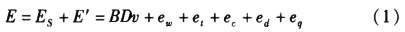 式中,E為流量計(jì)電極間信號(hào);Es為水流切割磁感線產(chǎn)生的電動(dòng)勢(shì);E’為各項(xiàng)干擾電動(dòng)勢(shì),包括微分干擾ew同相干擾et,、共模干擾ec、串模干擾ed和其他干擾eq;B為磁場(chǎng)強(qiáng)度;D為流管直徑;v為水流速度。