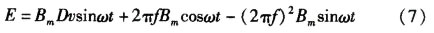 在正弦波勵(lì)磁方式下,假定勵(lì)磁電流為I=Imsinωt,其中ω=2πf,流量計(jì)的勵(lì)磁磁場(chǎng)強(qiáng)度B和勵(lì)磁電流相位相同,所以得到公式為B= Bmsinωt。將此公式帶入式(3)和式(4)可得