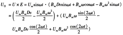 MPY100A的輸出公式為U’0=[X1-X2)(Y1-Y2)]/10+Z2,如圖1所示,X2和Y2相連并接地這樣使得E和U有相同的參考信號(hào)減小了外部干擾的引人,X1和Y1相乘減小了10倍,零點(diǎn)補(bǔ)償電壓(-UmBmω²)x(-1/10)=UmBmω²輸人給Z2,這樣zui后的U’0為