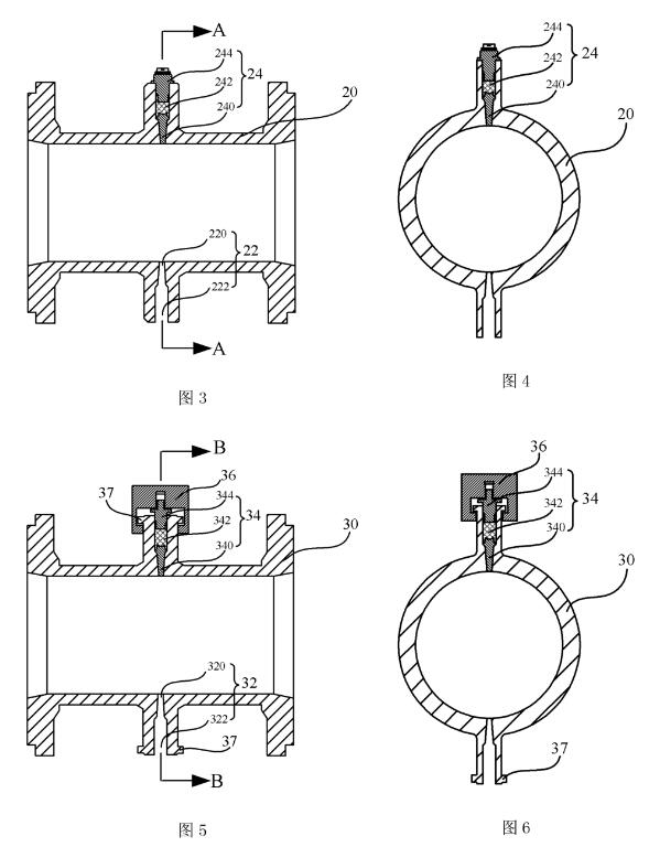 中,也可以是在經(jīng)過燒結(jié)工藝后的陶瓷測量管20上再進(jìn)行例如開鑿等后續(xù)加工工藝而形成電極插孔22。實際上,只要能制作出具有電極插孔的陶瓷管,其具體制作工藝并不限于上述的描述,仍可以有其他的變化,故在此不再贅述。