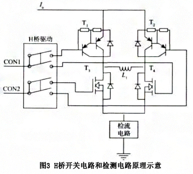 開橋開關(guān)電路主要由 也 橋路及其驅(qū)動電路組成, 用于實現(xiàn)對勵磁線圈進(jìn)行方波勵磁。 原理示意圖如圖3 所示。