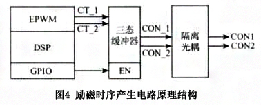 勵磁時序產(chǎn)生電路用于產(chǎn)生勵磁控制信號CON1 和 CON2 以控制方波勵磁時序,其電路原理結(jié)構(gòu)圖如圖4 所示。