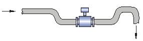 電磁流量計安裝示意圖 應(yīng)安裝在水平管道較低處和垂直向上處,避免安裝在管道的ZUI高點(diǎn)和垂直向下處;