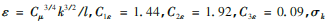 本文的湍流模型采用工程上使用zui**的標準k-ε模型,需要求解湍動能及其耗散率方程。在該模型中,有關(guān)湍動能k和耗散率ε的運輸方程如下