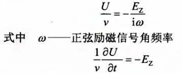 渦電場法的理論基礎為:電磁流量計測量過程中,交變的磁場將伴隨產(chǎn)生渦電場,該電場不受流速分布的影響,通過測量電磁流量計電極所在位置渦電場強度測取一次傳感器轉(zhuǎn)換系數(shù)。當一次傳感器管段內(nèi)速度分布平坦時,對于正弦信號勵磁磁場的一次傳感器,有效區(qū)域內(nèi)任意點的速度v、電勢U以及渦電場強度在管段軸向方向的分量Ez具有如式,所示關系,對于矩形脈沖信號勵磁磁場則如式所示向