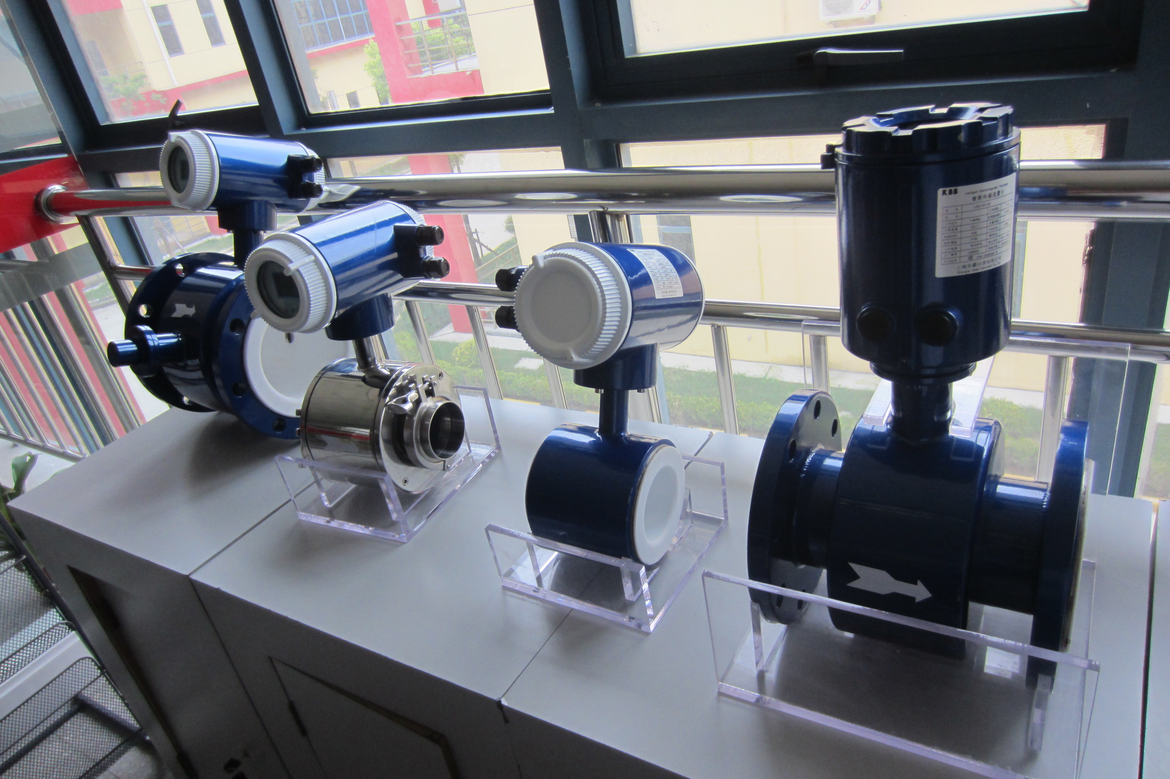 電磁流量計(jì)由傳感器和轉(zhuǎn)換器兩部分組成,是種測量導(dǎo)電介質(zhì)體積流量的感應(yīng)式儀表。它根據(jù)法拉第電磁感應(yīng)原理,在與測量管軸線和磁力線相垂直的管壁上安裝一對檢測電極。當(dāng)導(dǎo)電液體沿測量管軸線運(yùn)動(dòng)時(shí),導(dǎo)電液體切割磁力線產(chǎn)生感應(yīng)電勢,磁感應(yīng)電勢由兩個(gè)檢測電極檢出,數(shù)值大小與流量成比例。傳感器將感應(yīng)電勢作為流量信號(hào)傳送到轉(zhuǎn)換器,經(jīng)放大變換濾波及系列的數(shù)字處理,用帶背光的點(diǎn)陣式液晶顯示瞬時(shí)流量和累積流量。