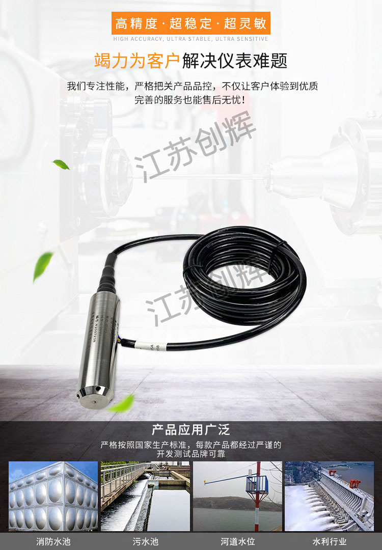 CH-TRSF系列防腐投入式液位變送器適用于石油化工、冶金、電力、制藥、供排水、環(huán)保等系統(tǒng)和行業(yè)的各種介質的液位測量。精巧的結構,簡單的調校和靈活的安裝方式為用戶輕松地使用提供了方便。4~20mA、0~5v、 0~10mA等標準信號輸出方式由用戶根據(jù)需要任選。